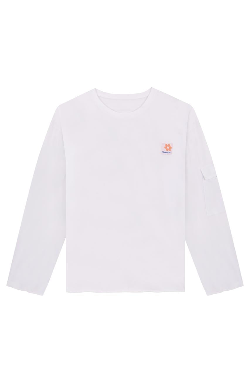 La flor coral La Fleur florece plena en la espalda blanca, mientras el detalle sutil al frente evoca la pureza mediterránea. Llévala larga para envolver tu día con la calma luminosa y fragancias marinas de Chakana.